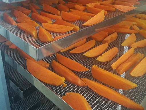 紅薯烘干要準(zhǔn)確掌握好紅薯的干度,可用口嚼時(shí)軟而綿,這樣硬度為適宜。如果烘干過(guò)干,吃時(shí)嚼不爛,影響其品質(zhì),但烘干不到位,水分多,容易生霉腐爛。根據(jù)使用我司小型紅薯干烘干機(jī)的客戶(hù)反饋的情況,紅薯干的烘干溫度不宜超過(guò)55℃,要分階段烘干,中間要讓紅薯干回軟。